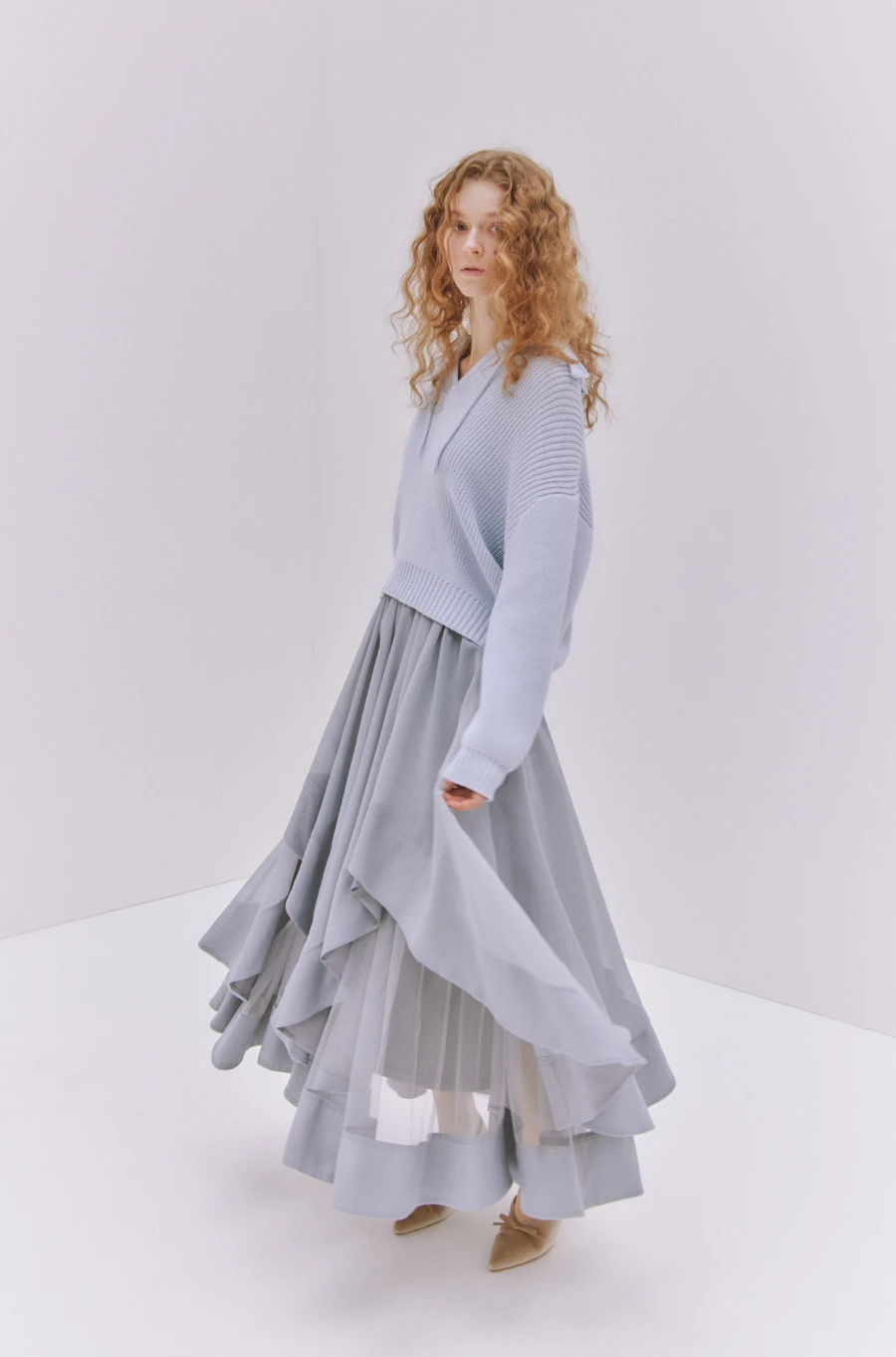 KNIT ¥9,900 SKIRT ¥12,100 SHOES ¥13,200
