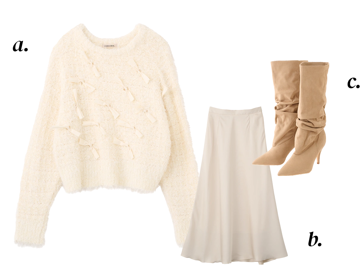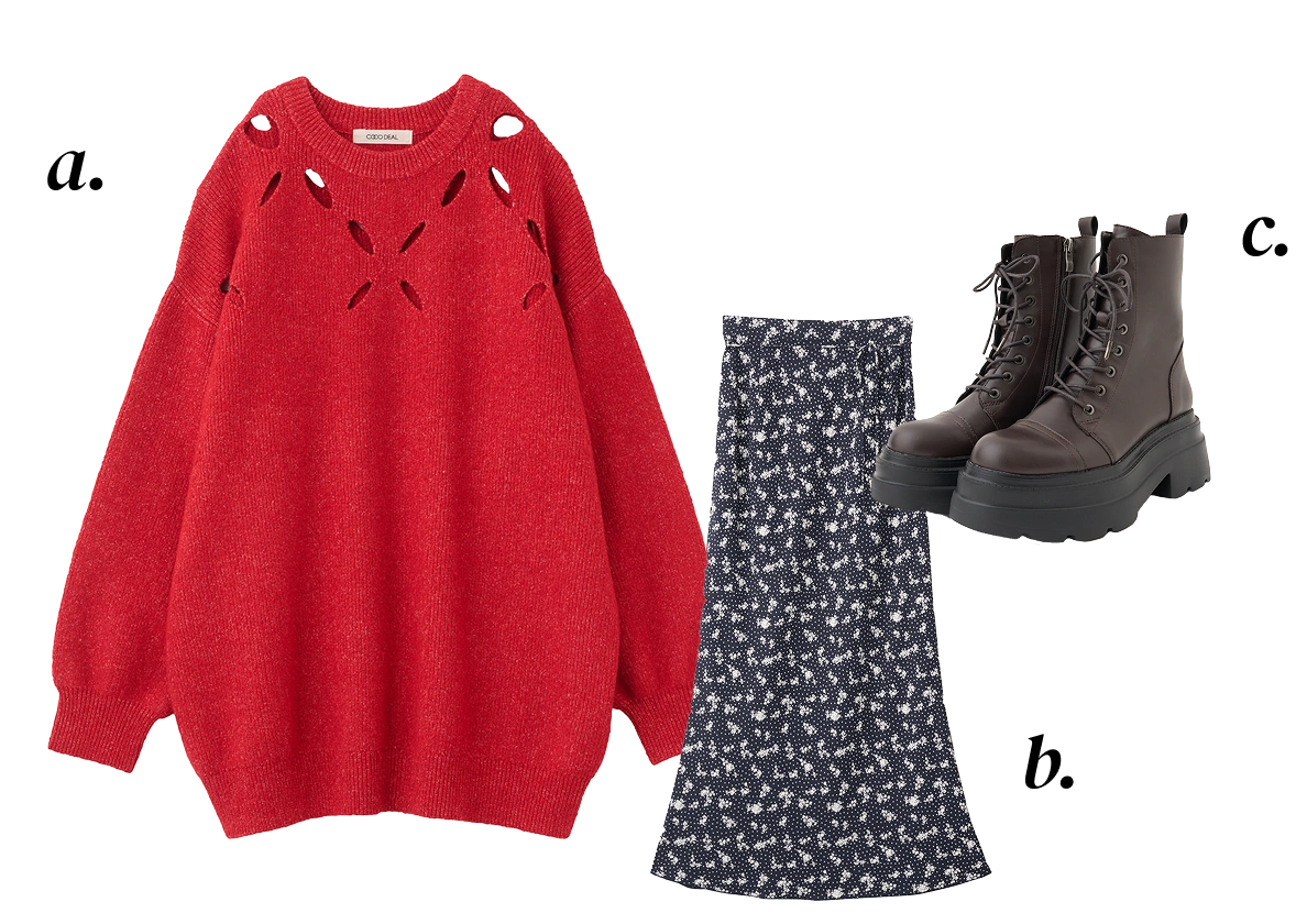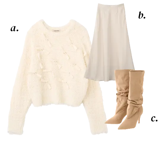 a. Knit ¥12,100 b. Skirt ¥12,650 c. Shoes ¥16,500