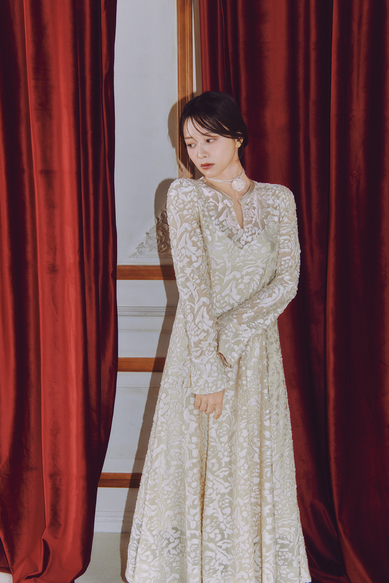 凛とした甘さを演出するレースワンピが