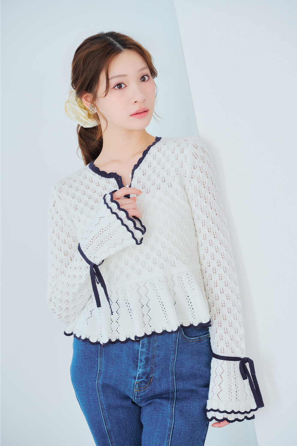 ニットのさりげない透け感と、