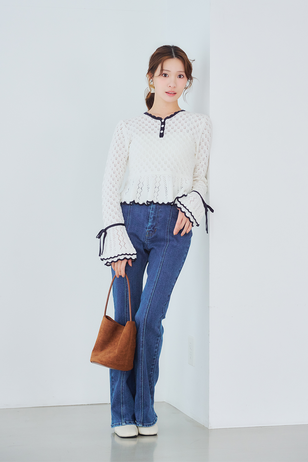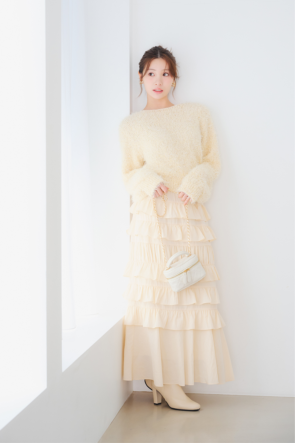 フェミニンな存在感を放つ、女性らしいコーデの完成!