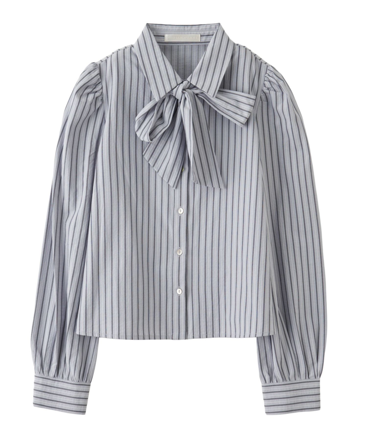 ボウタイリボンストライプブラウス