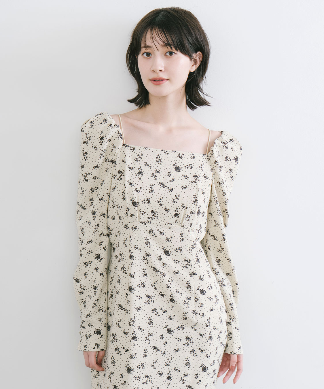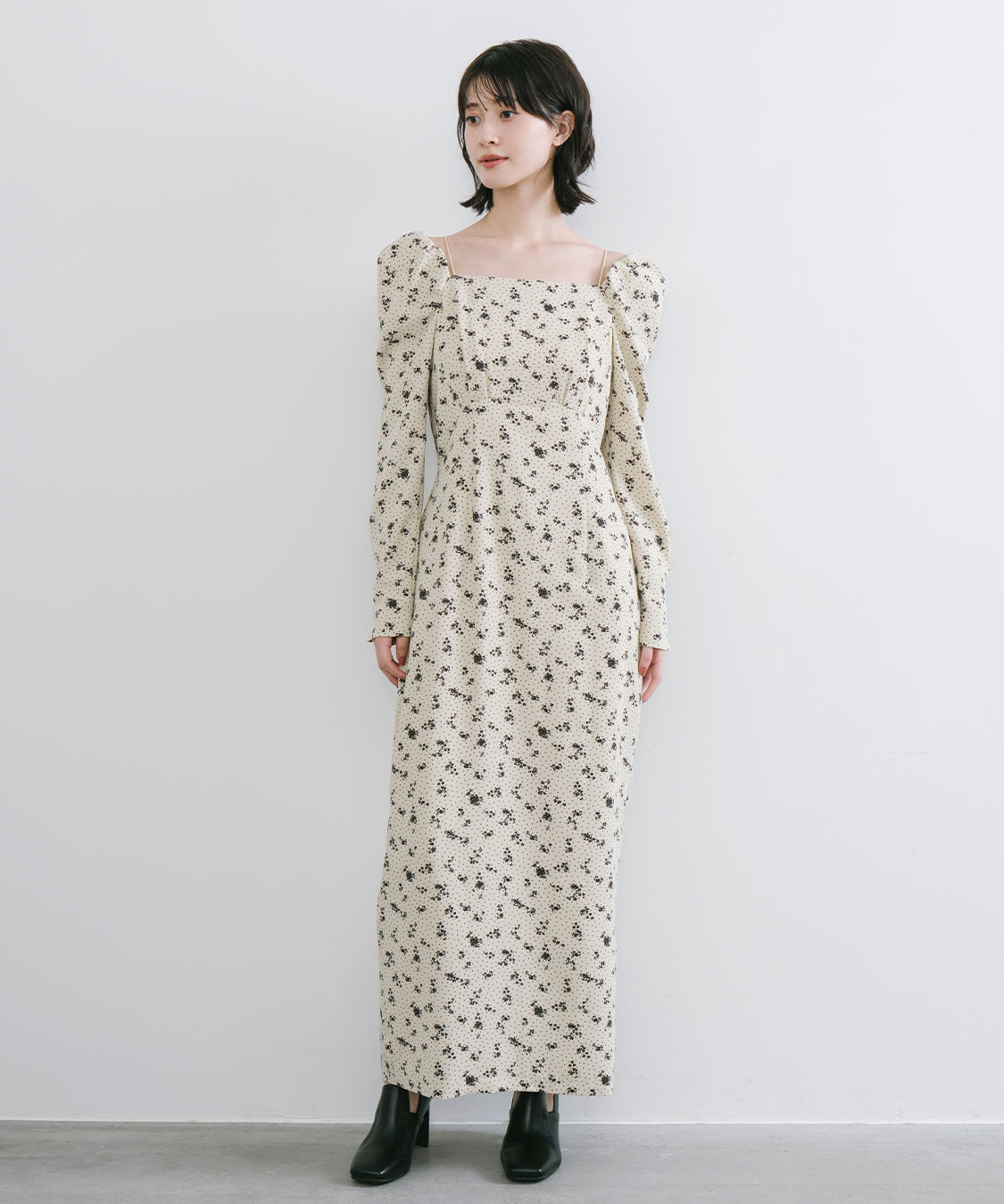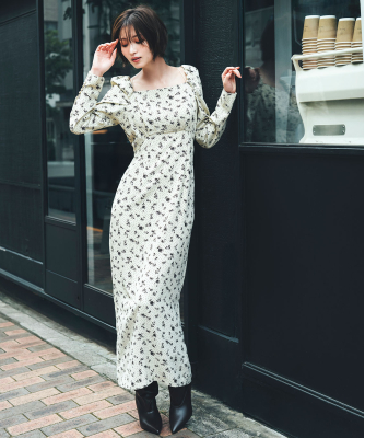 スクエアネックプリントワンピース