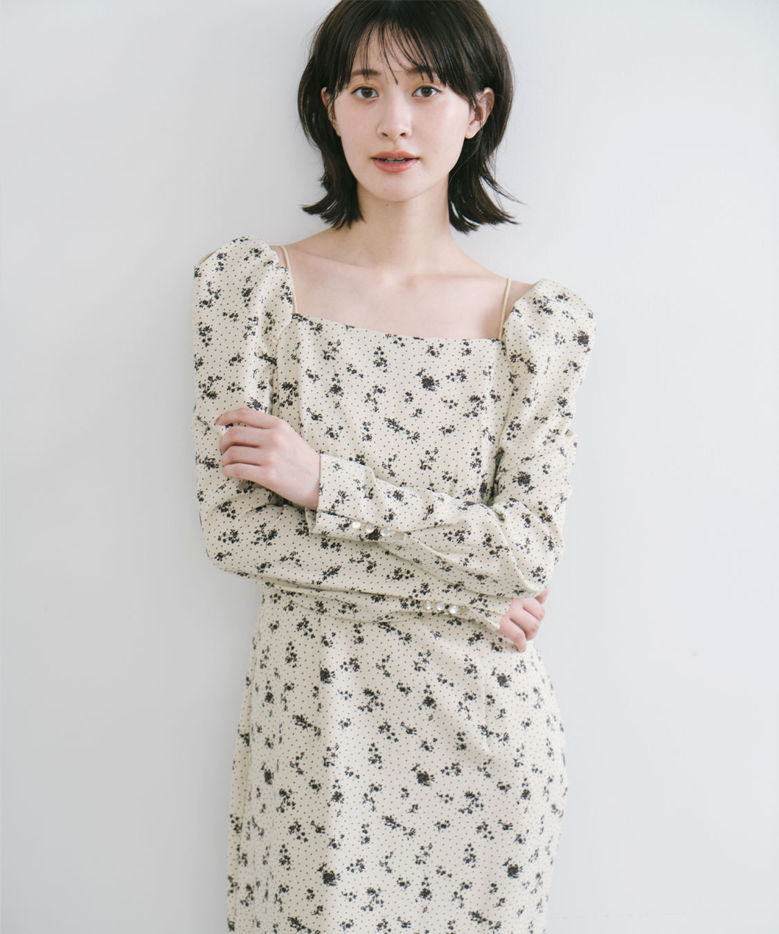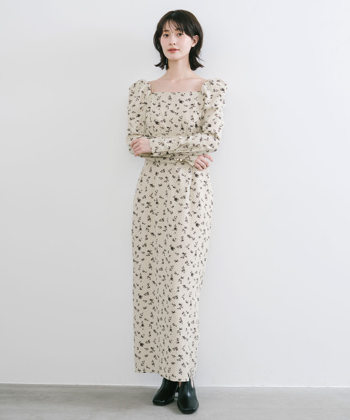 スクエアネックプリントワンピースを使用した他のコーディネート