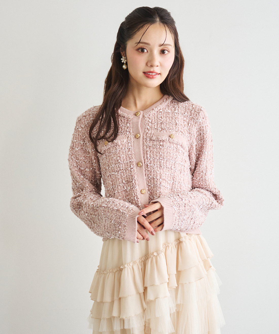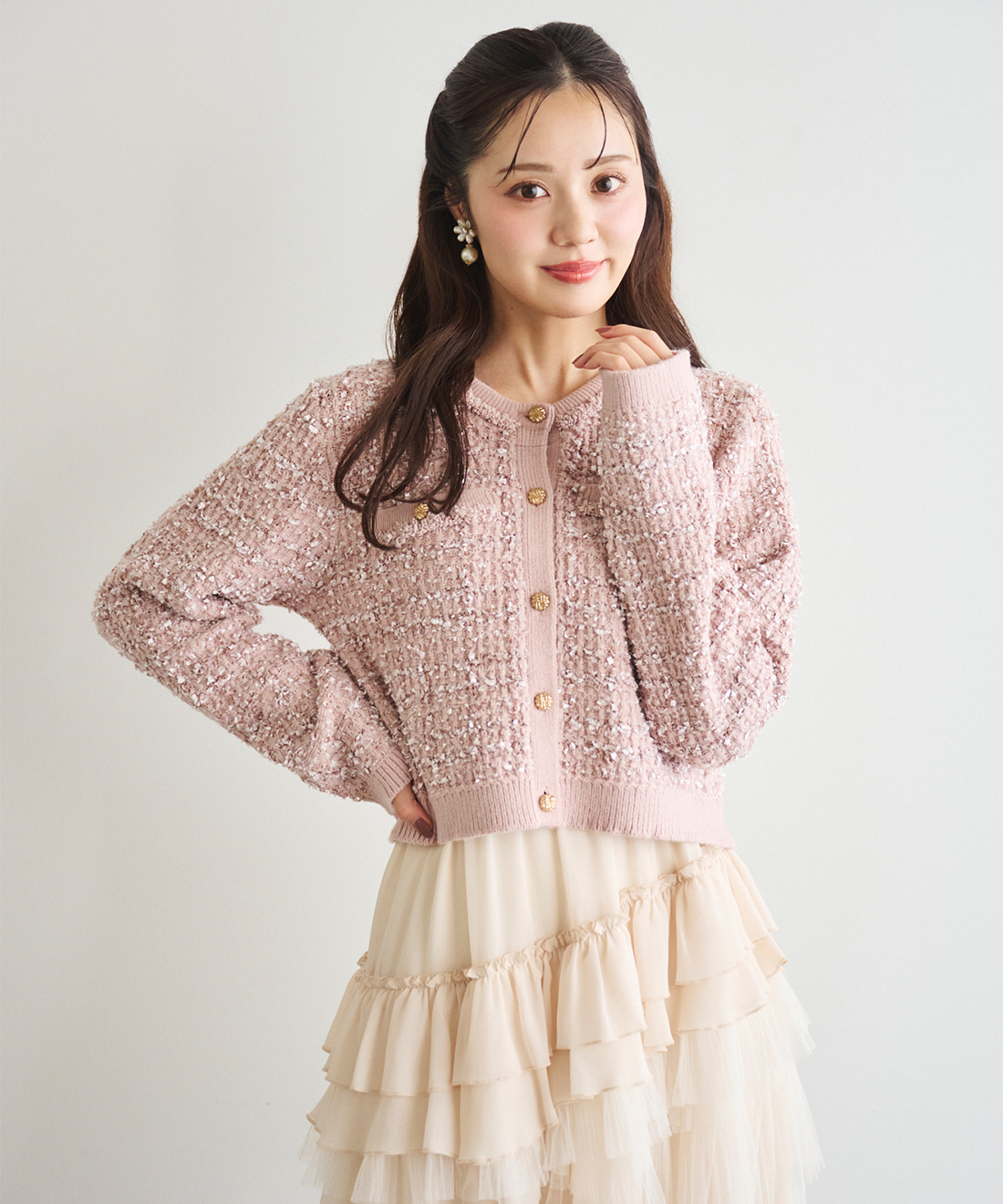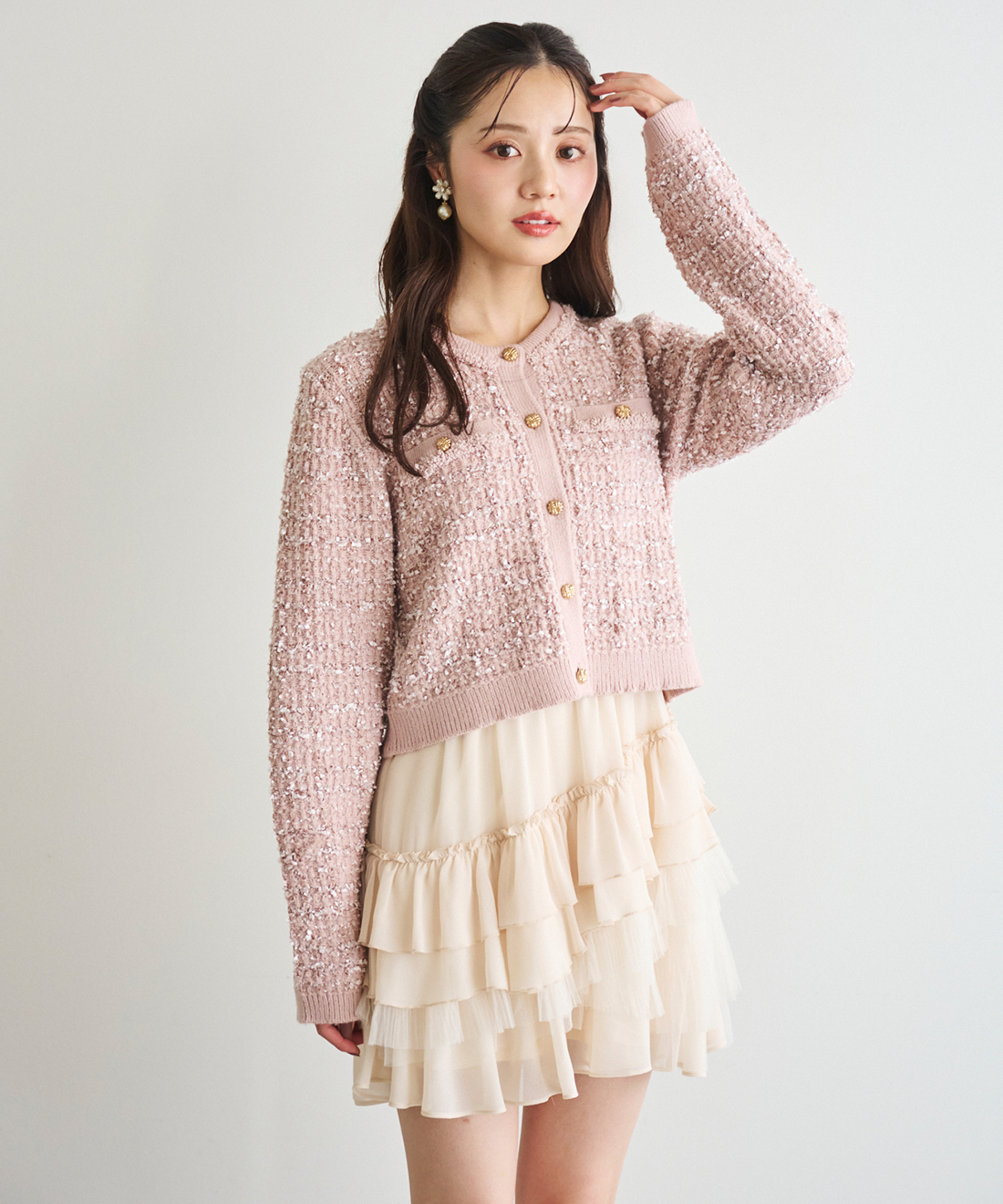 ツイードニットカーディガンを使用した他のコーディネート