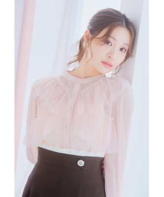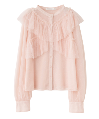 ドットチュールフリルブラウス
