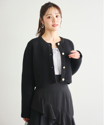 【WEEKEND SALE 1/24(土)10:00~1/25(日)23:59】 カーディガンのように気軽に羽織れ、コートのような暖かさと見た目を兼ね備えたコーディガン。4種類のゴールドのボタンは、まるでアソートチョコレートのような、可愛らしいボタンを使用し、今シーズンのテーマ”Le Salon de Lillie”を表現しています。しっかりとした厚みと膨らみが特徴の接結編みで、季節の変わり目の中間アウターとしておすすめの1枚。オン・オフ問わず、きれいめスタイルを格上げしてくれる万能アイテムです。 裏地:なし 透け感:なし 伸縮性:あり