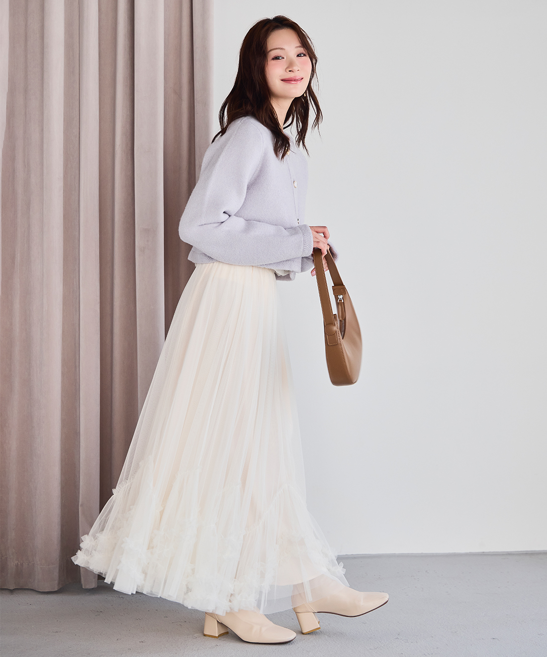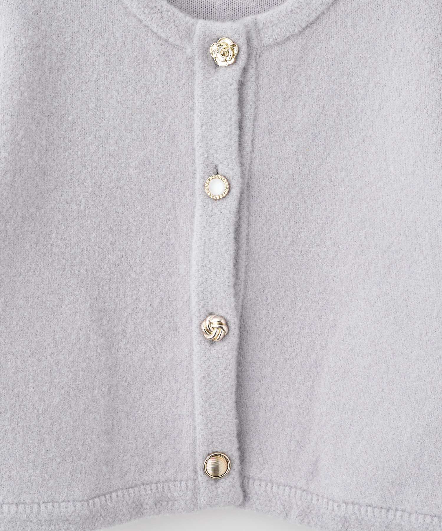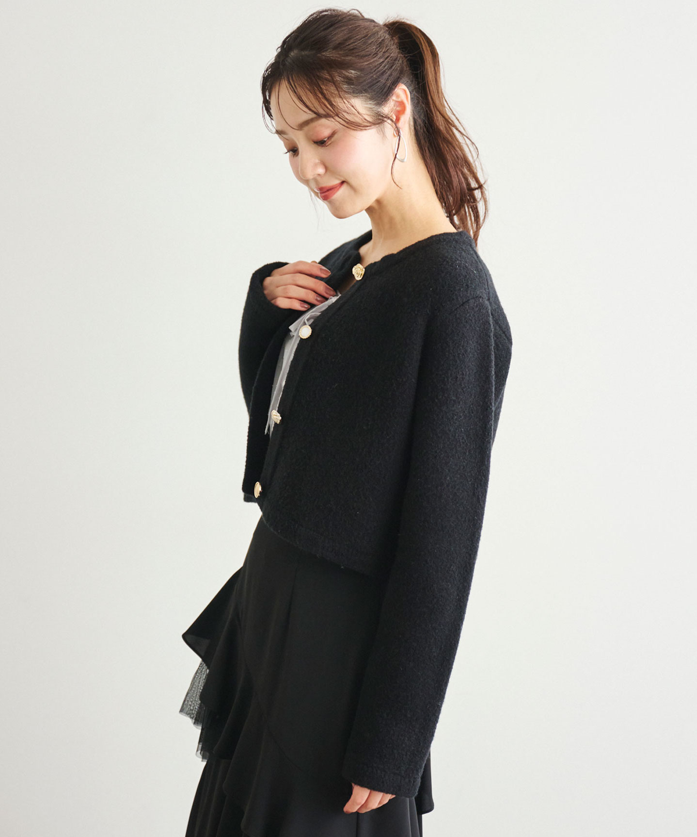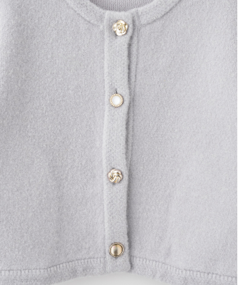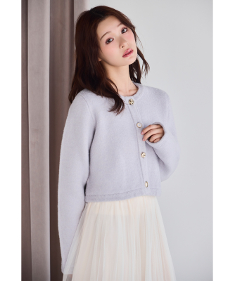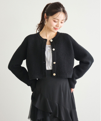 カーディガンのように気軽に羽織れ、コートのような暖かさと見た目を兼ね備えたコーディガン。4種類のゴールドのボタンは、まるでアソートチョコレートのような、可愛らしいボタンを使用し、今シーズンのテーマ”Le Salon de Lillie”を表現しています。しっかりとした厚みと膨らみが特徴の接結編みで、季節の変わり目の中間アウターとしておすすめの1枚。オン・オフ問わず、きれいめスタイルを格上げしてくれる万能アイテムです。