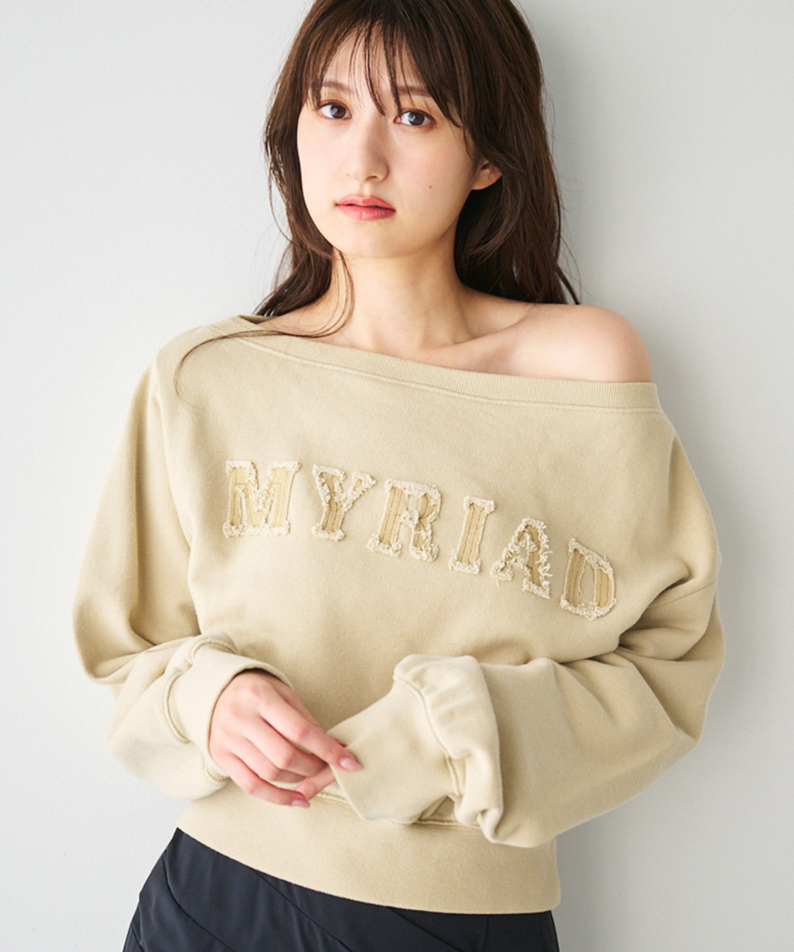オフショルニット×フリルティアードスカート