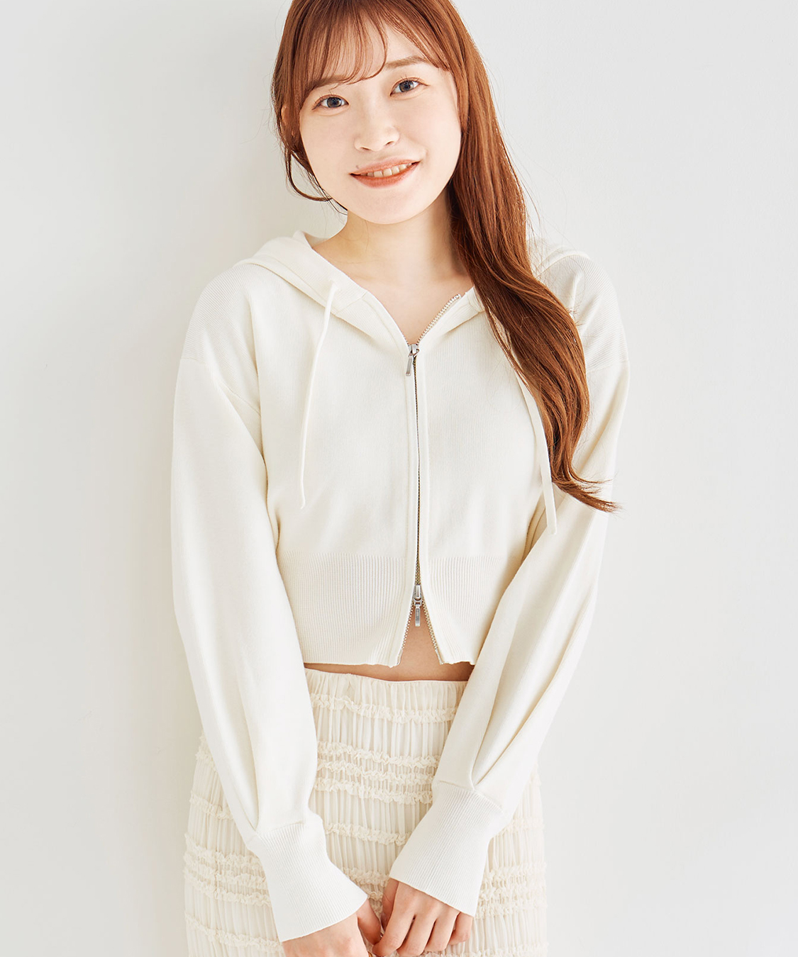 コンパクト逆開ジップニットフーディー