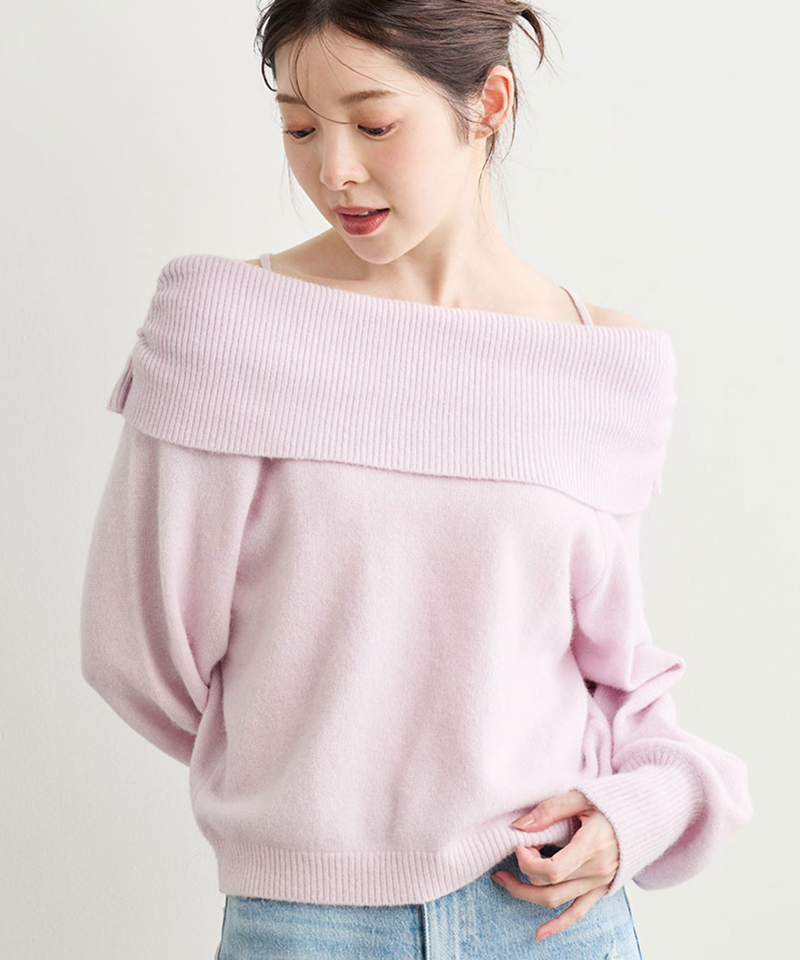 アシメネックレイヤード風ニット